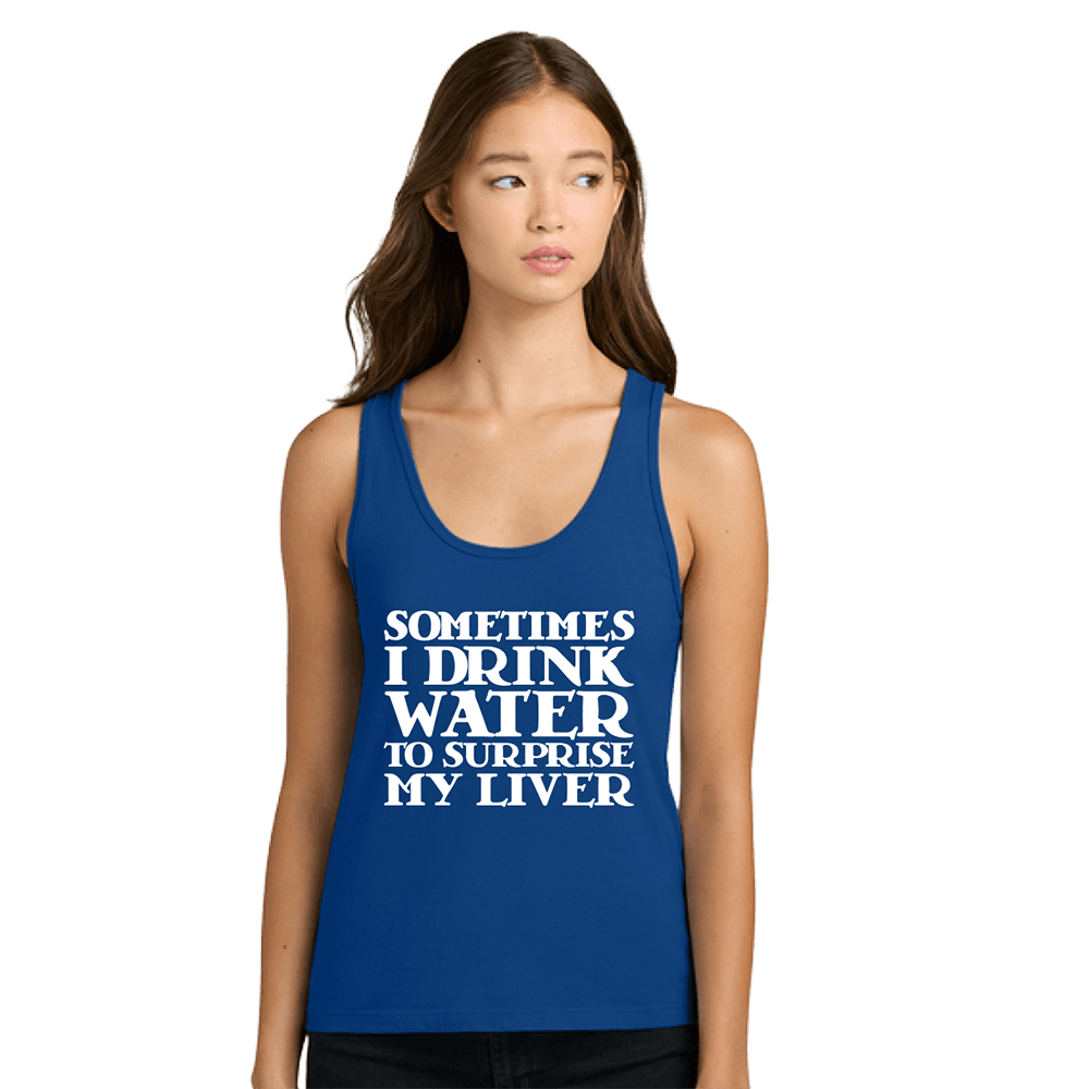 Sometimes I Drink Water to Surprise My Liver Tank Top Blue